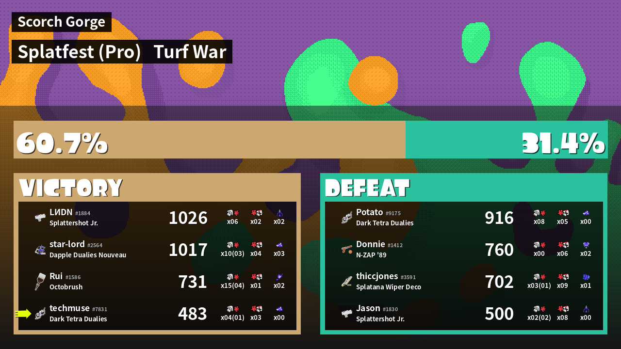 | Mode | Turf War - Splatfest (Pro) | ||