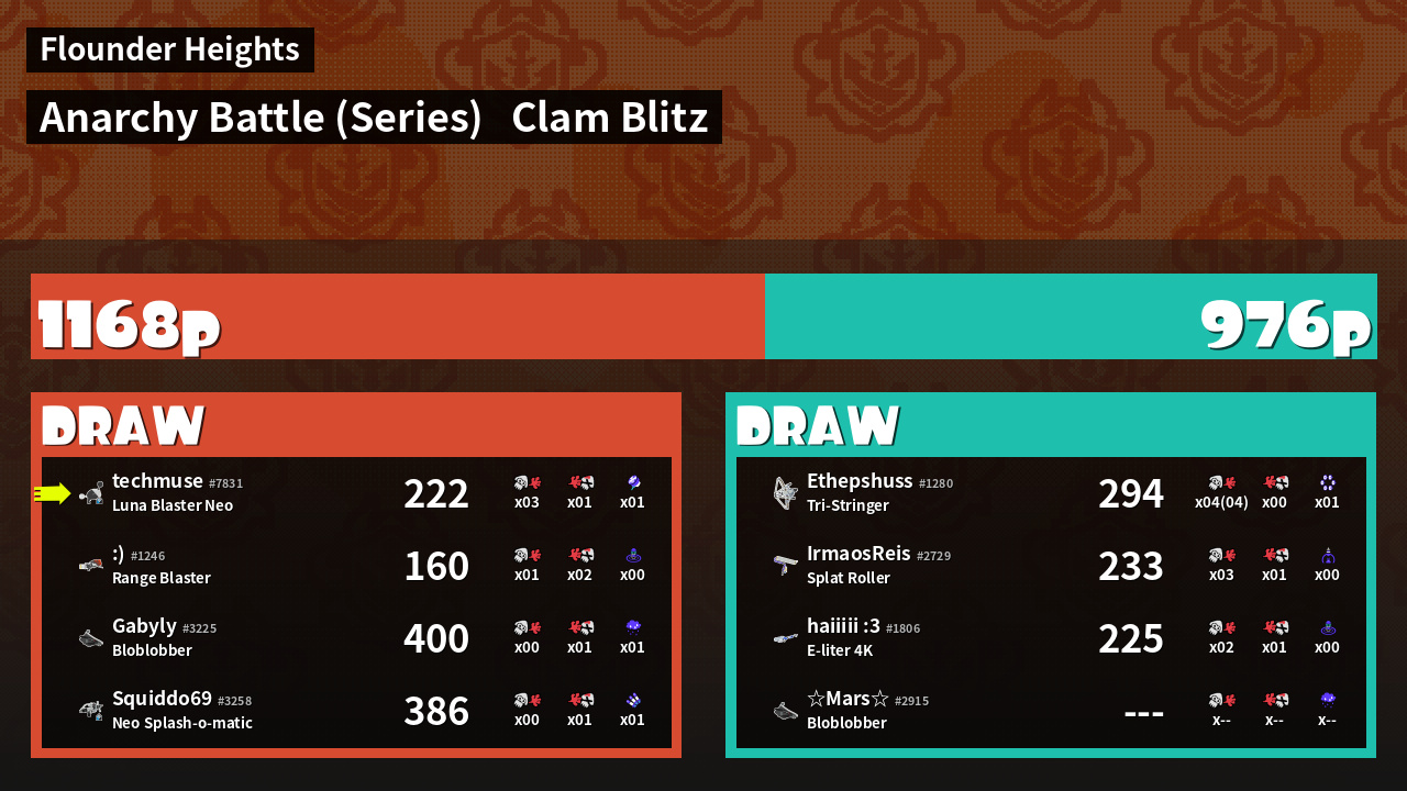 | Mode | Clam Blitz - Anarchy Battle (Series) | ||