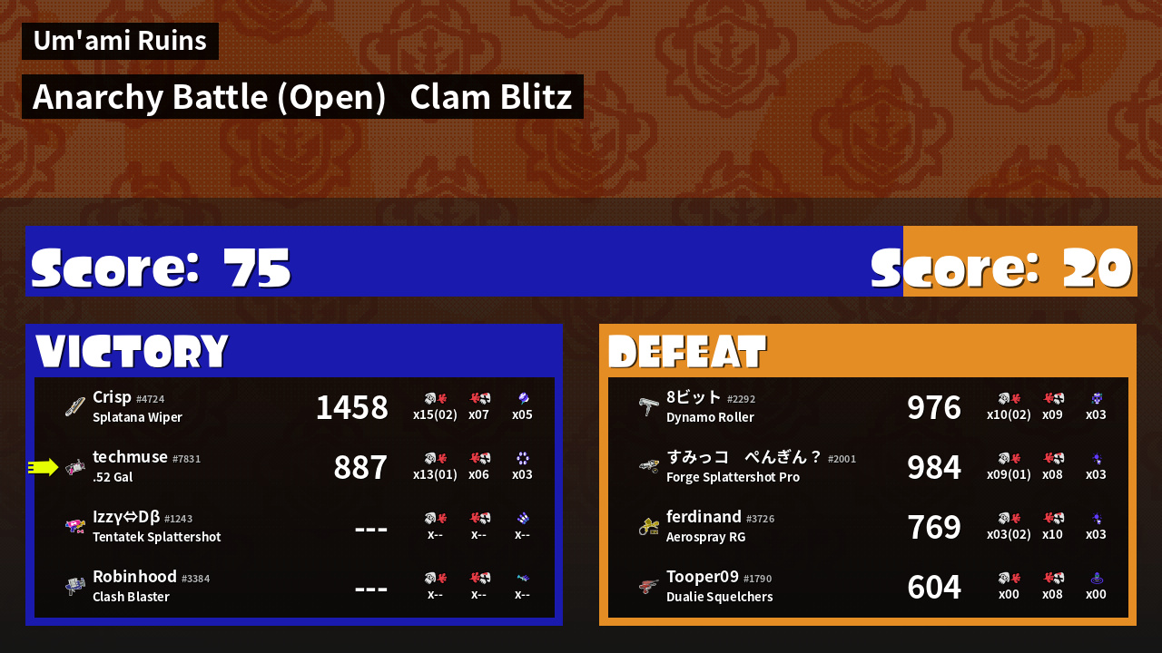 | Mode | Clam Blitz - Anarchy Battle (Open) | ||