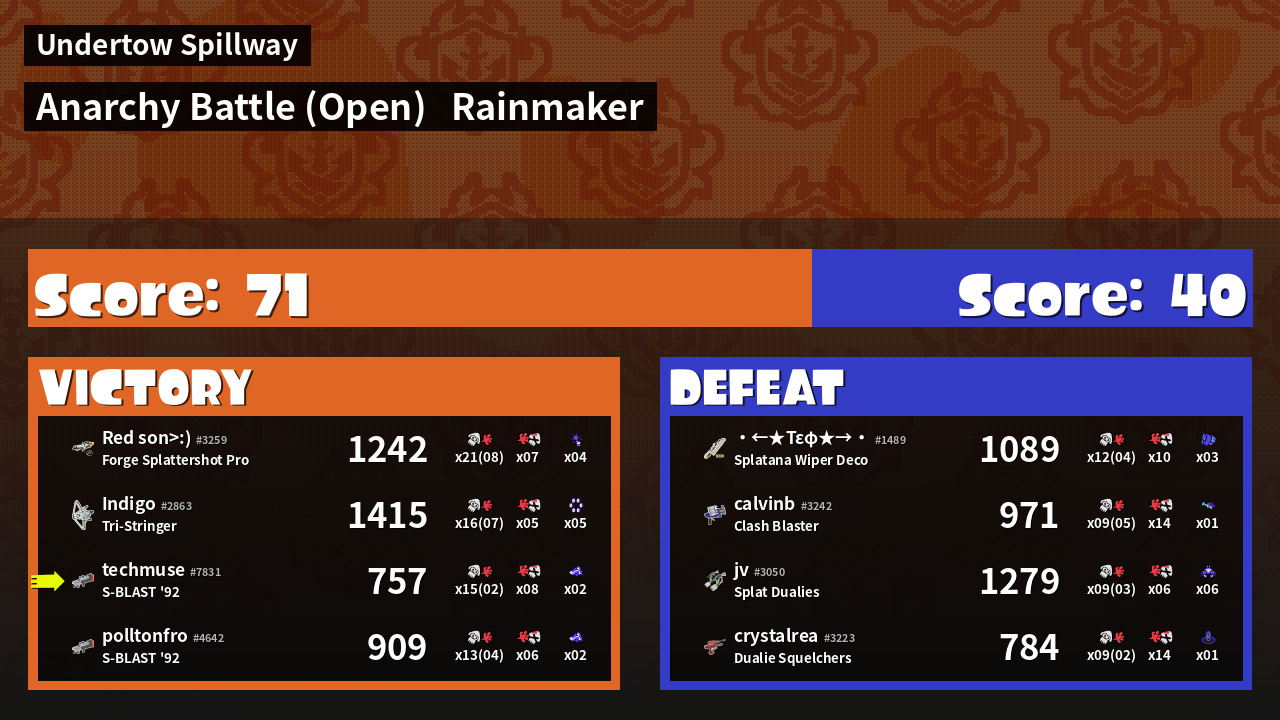 | Mode | Rainmaker - Anarchy Battle (Open) | ||
