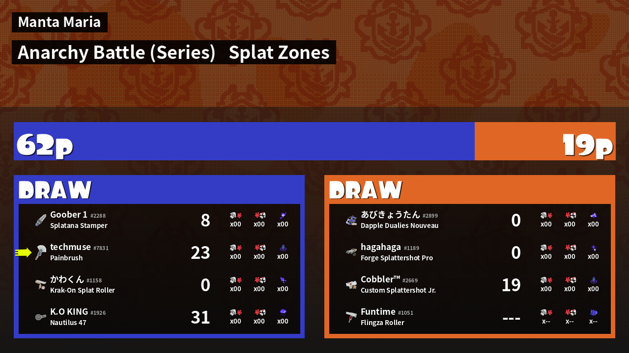 | Mode | Splat Zones - Anarchy Battle (Series) | ||