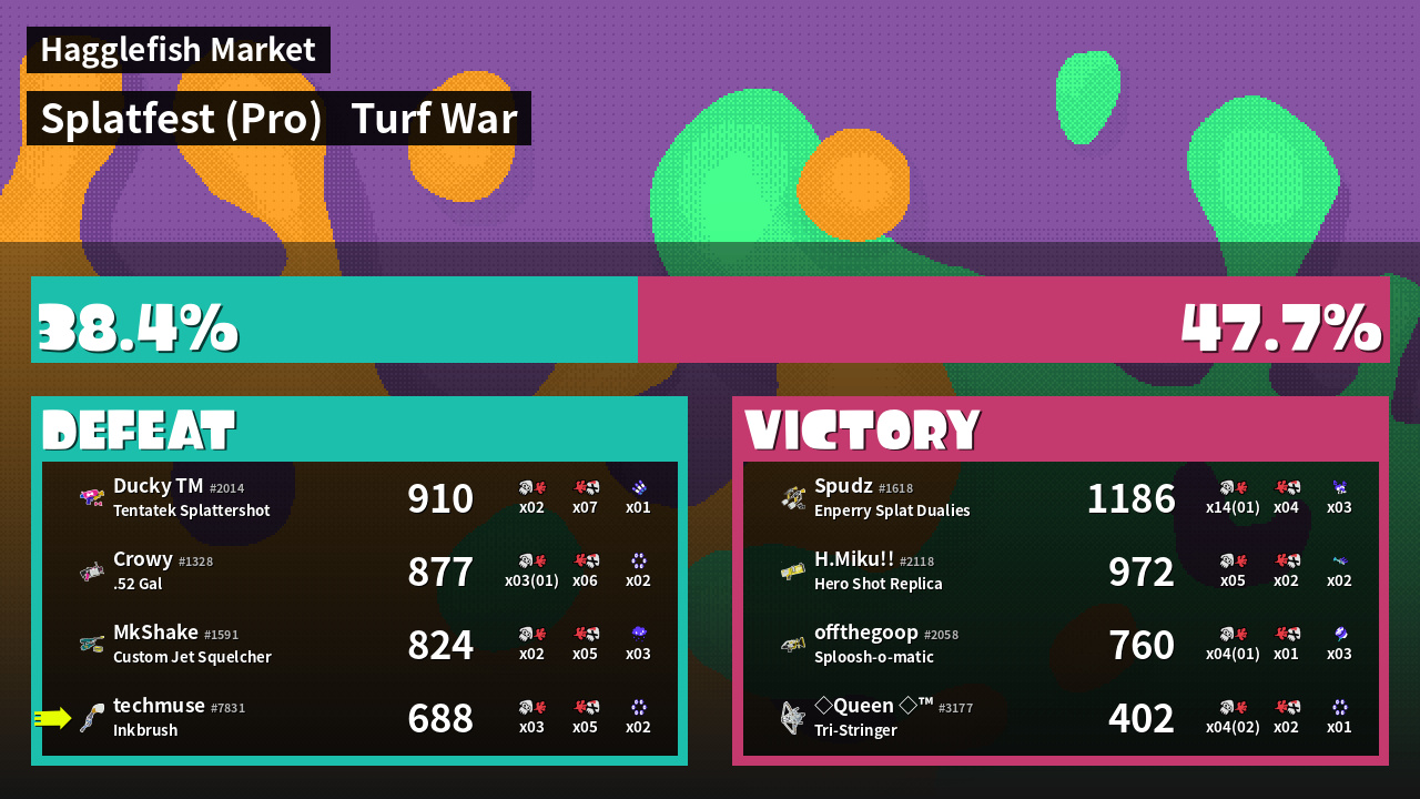 | Mode | Turf War - Splatfest (Pro) | ||