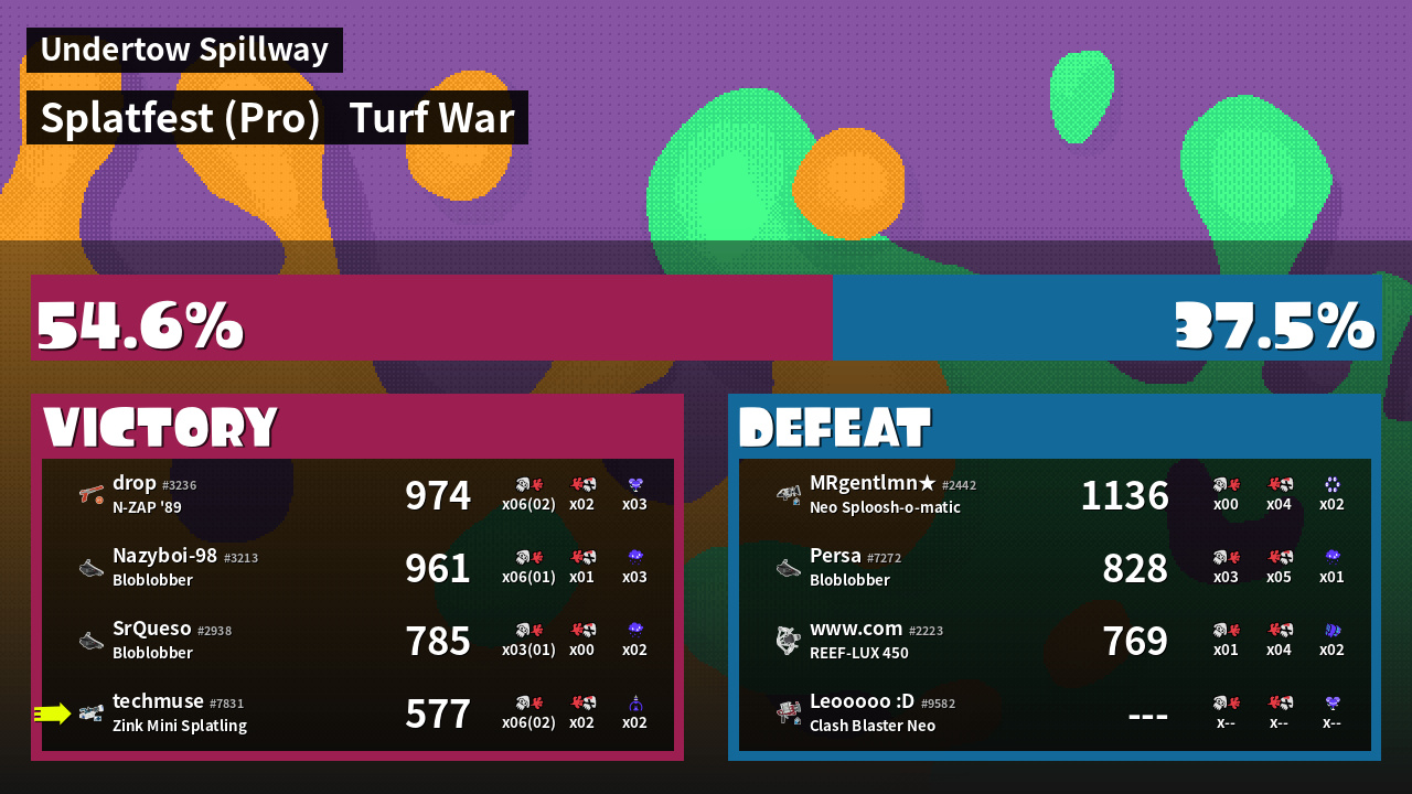 | Mode | Turf War - Splatfest (Pro) | ||