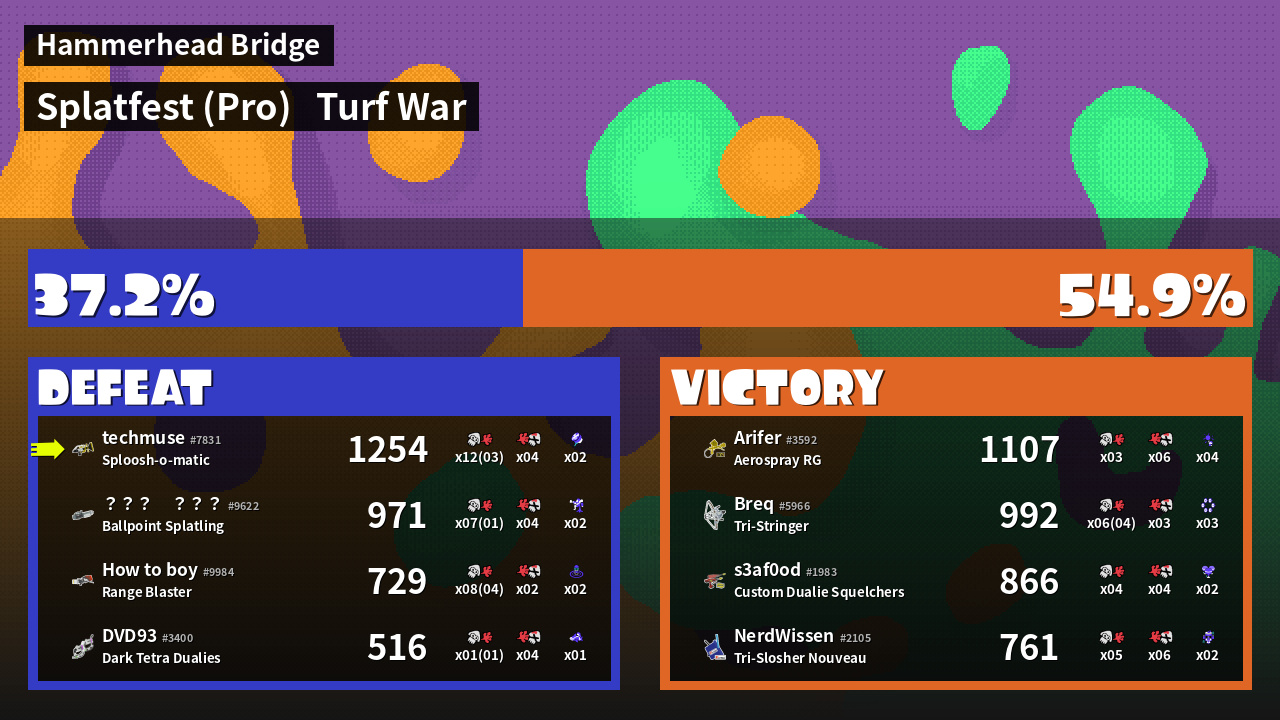 | Weapon | Sploosh-o-matic ( Curling Bomb / Ultra Stamp) | ||