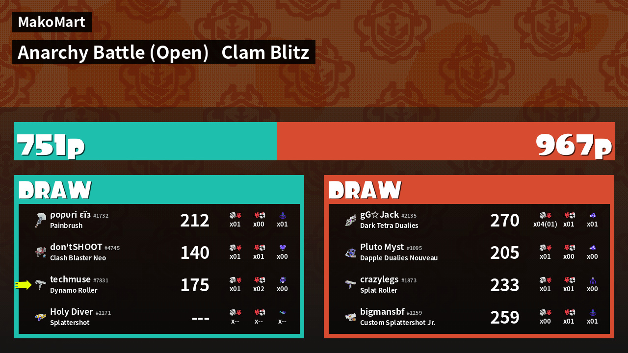 | Mode | Clam Blitz - Anarchy Battle (Open) | ||
