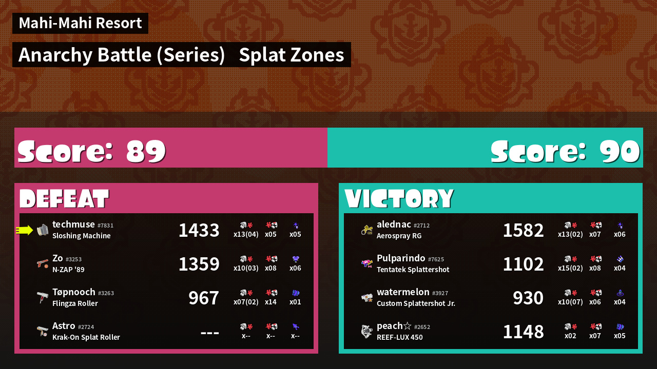 | Mode | Splat Zones - Anarchy Battle (Series) | ||