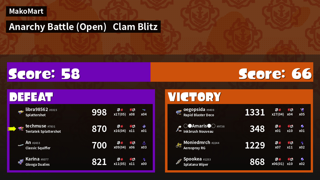 | Mode | Clam Blitz - Anarchy Battle (Open) | ||
