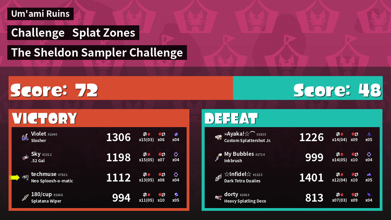 | Medals | #1 Splat Zone Inker #1 Splat Assister | ||