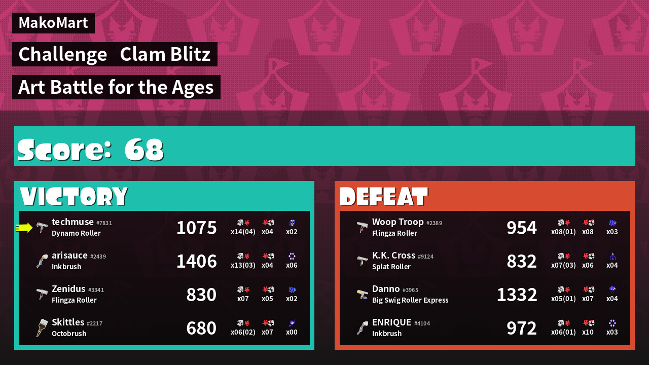 | Medals | #1 Overall Splatter #1 Enemy Splatter #1 Splat Assister | ||