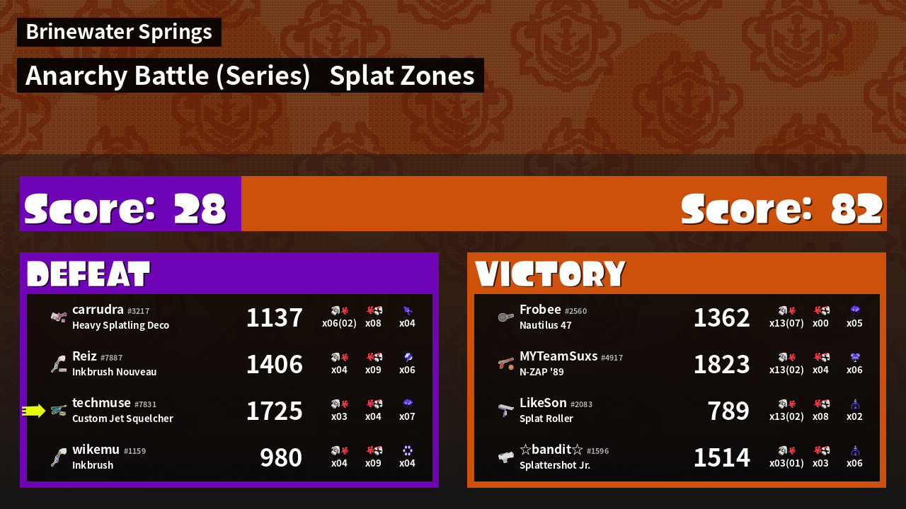 | Mode | Splat Zones - Anarchy Battle (Series) | ||