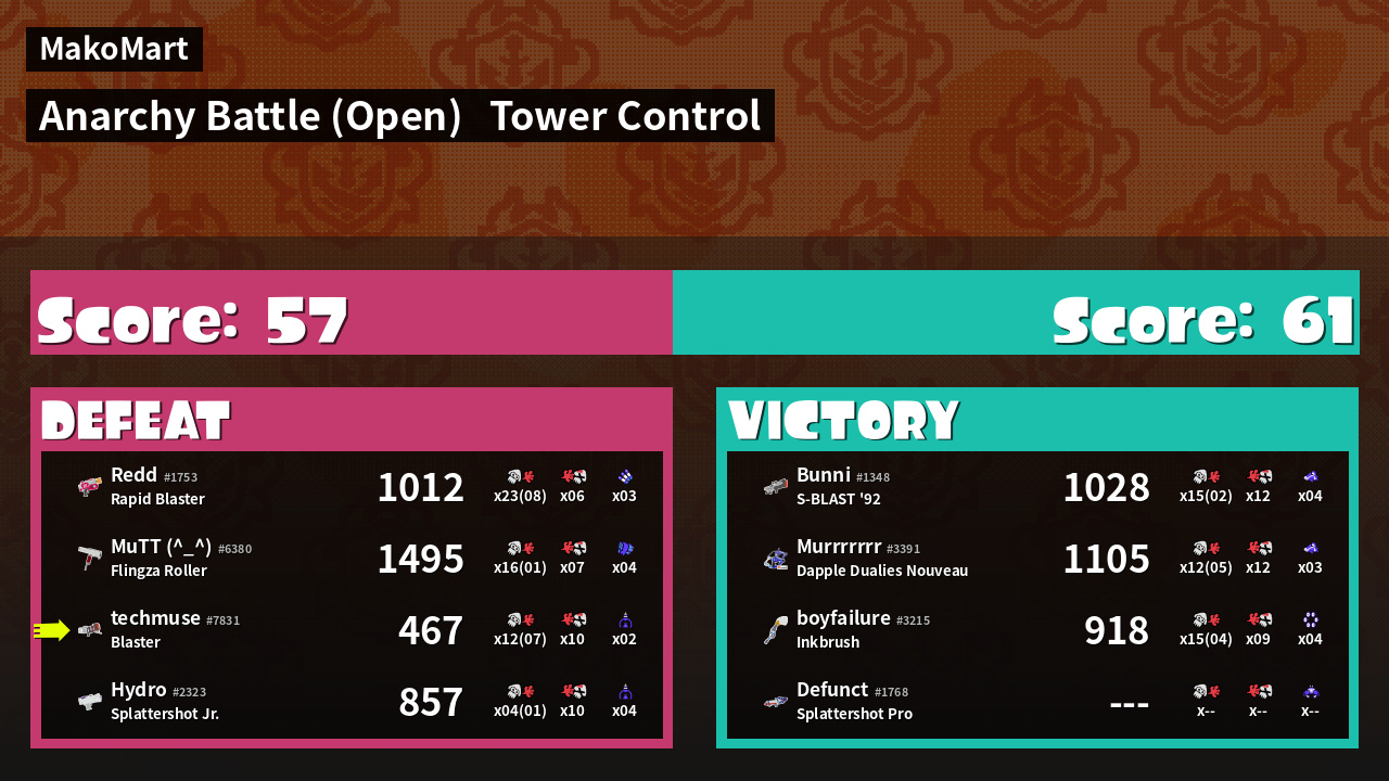 | Mode | Tower Control - Anarchy Battle (Open) | ||