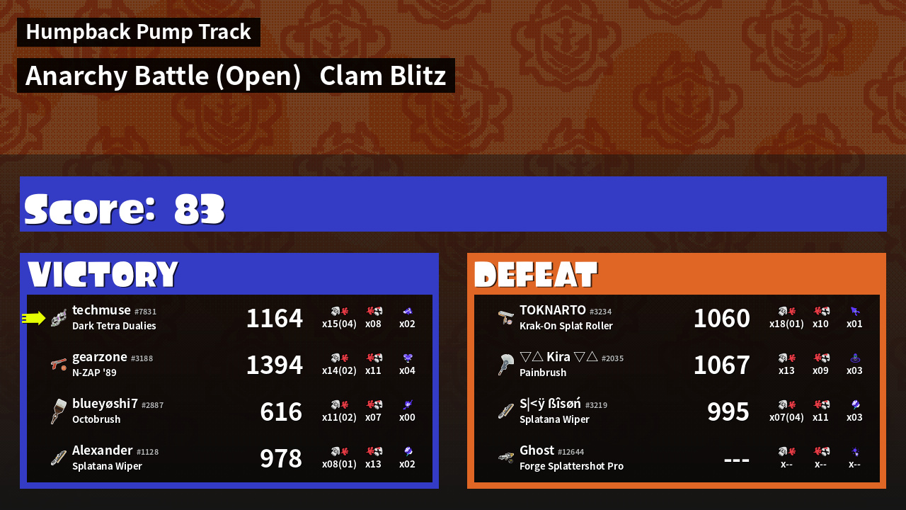 | Mode | Clam Blitz - Anarchy Battle (Open) | ||