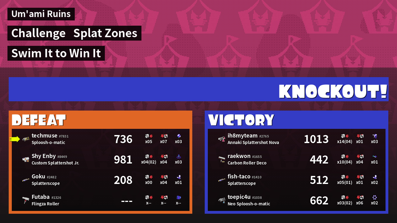 | Medals | #1 Overall Splatter #1 Splat Zone Inker #1 Popular Target | ||