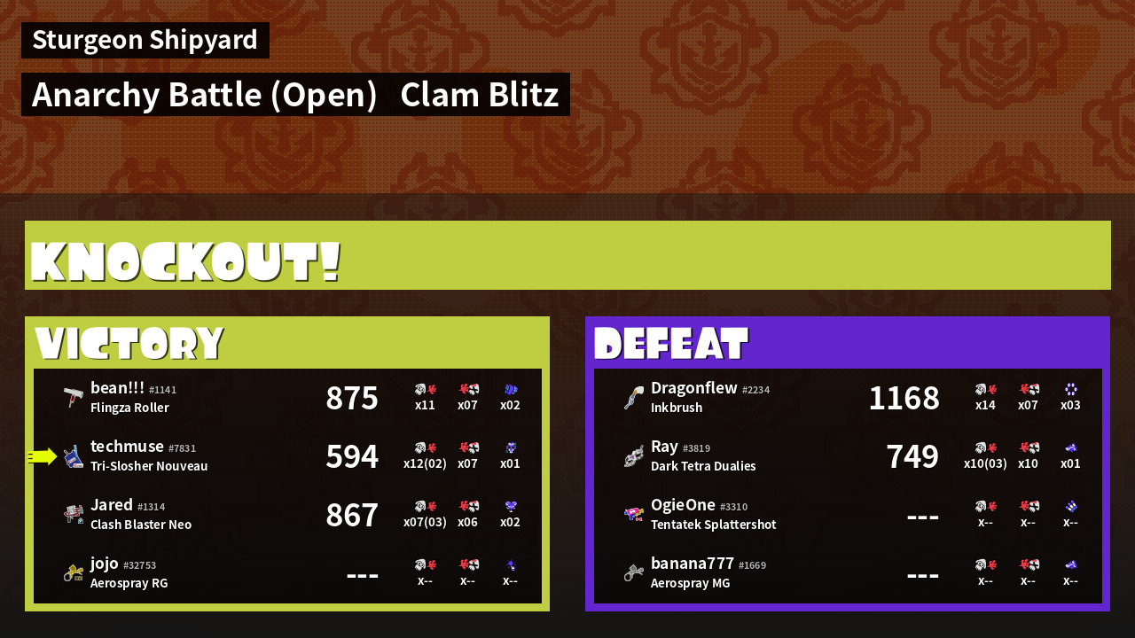 | Mode | Clam Blitz - Anarchy Battle (Open) | ||