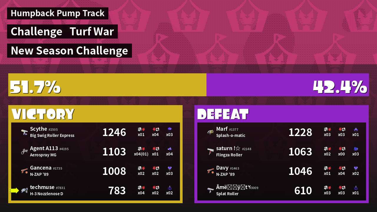 | Mode | Turf War - Challenge | ||