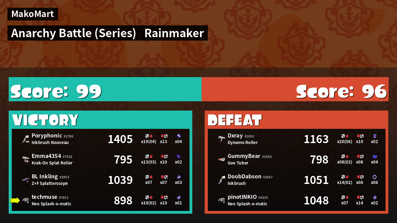 | Mode | Rainmaker - Anarchy Battle (Series) | ||