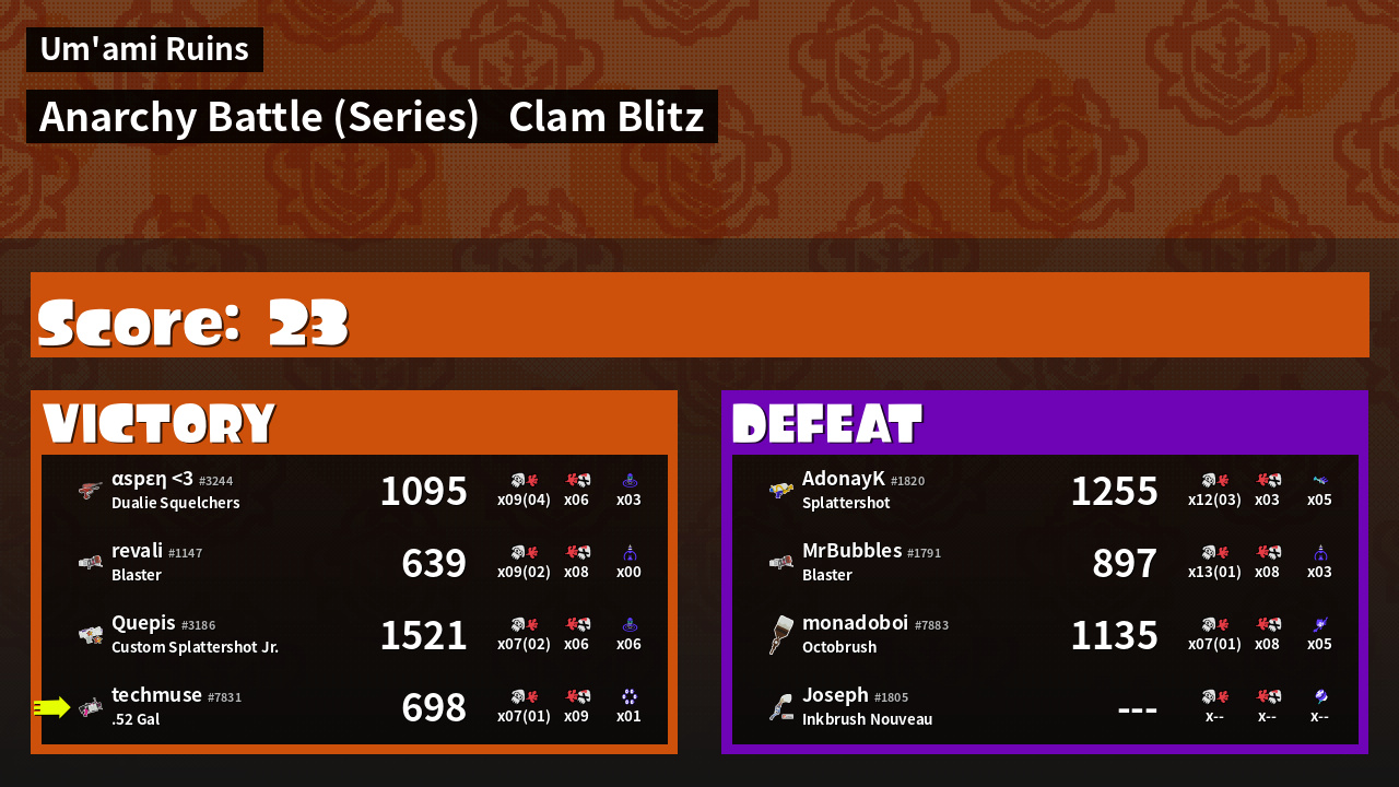 | Mode | Clam Blitz - Anarchy Battle (Series) | ||