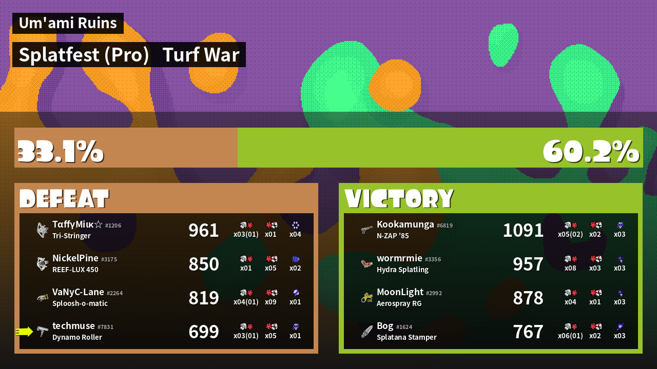 | Mode | Turf War - Splatfest (Pro) | ||