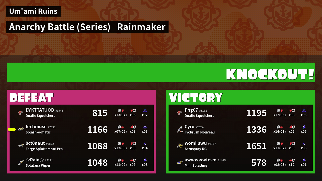 | Mode | Rainmaker - Anarchy Battle (Series) | ||
