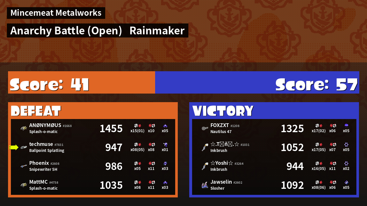 | Mode | Rainmaker - Anarchy Battle (Open) | ||