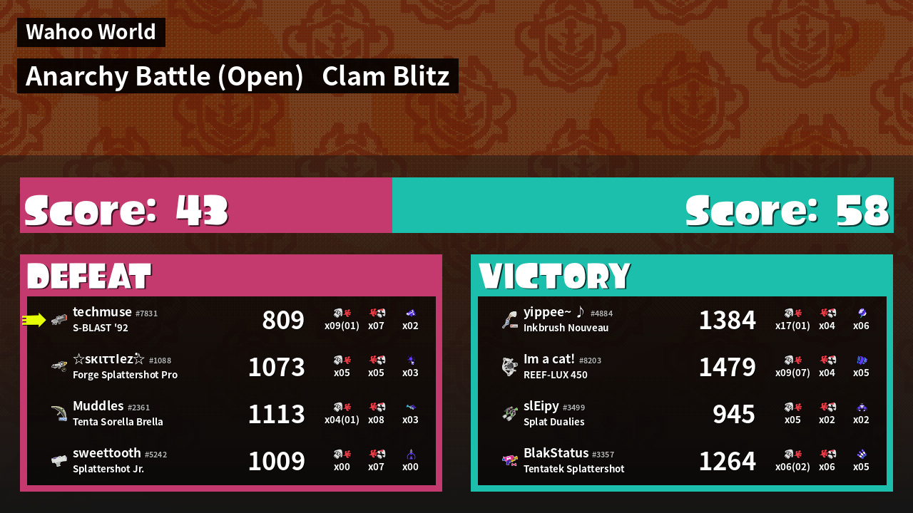 | Mode | Clam Blitz - Anarchy Battle (Open) | ||