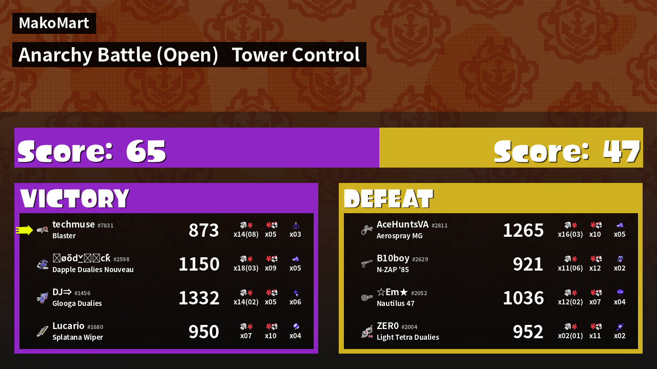 | Mode | Tower Control - Anarchy Battle (Open) | ||