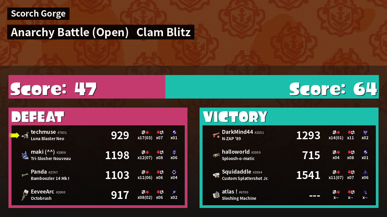 | Mode | Clam Blitz - Anarchy Battle (Open) | ||
