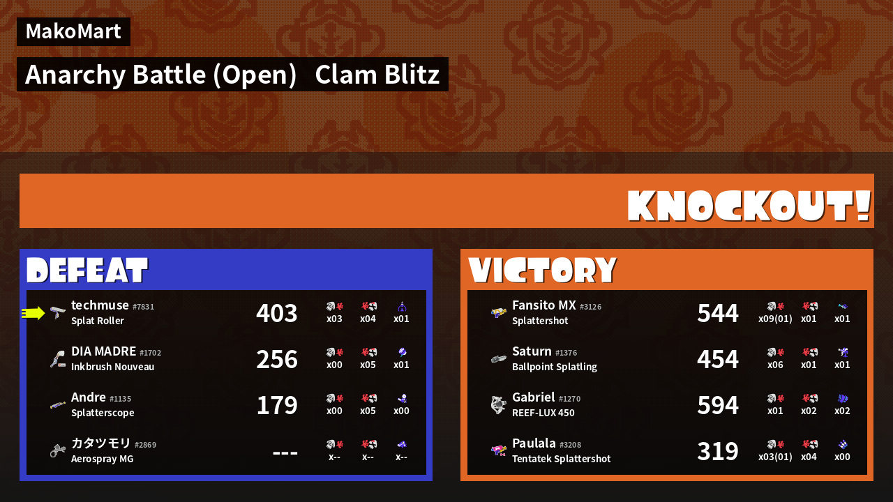 | Mode | Clam Blitz - Anarchy Battle (Open) | ||