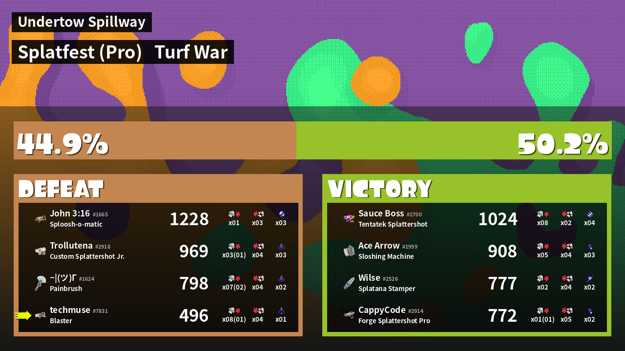 | Medals | #1 Overall Splatter #1 Popular Target #1 Super Jump Spot | ||