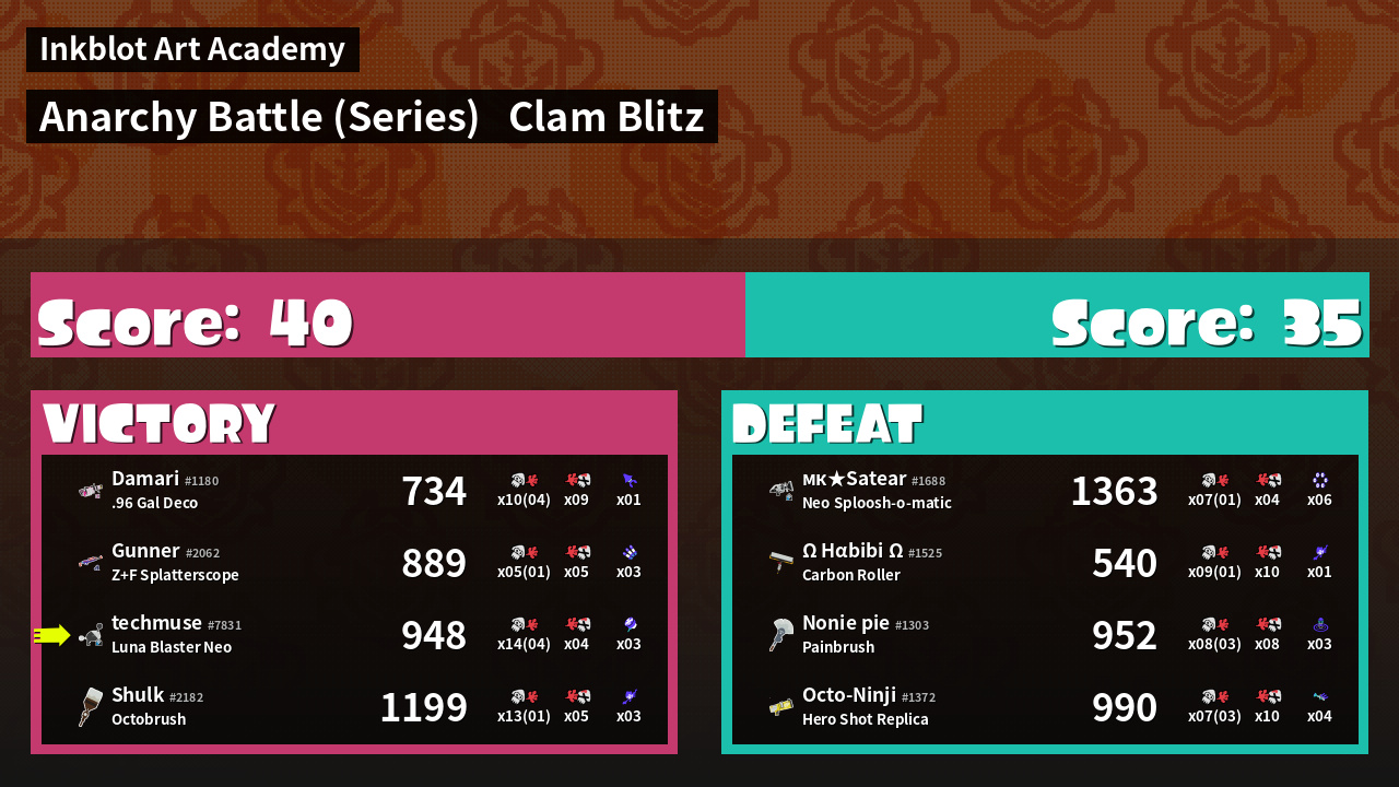 | Mode | Clam Blitz - Anarchy Battle (Series) | ||