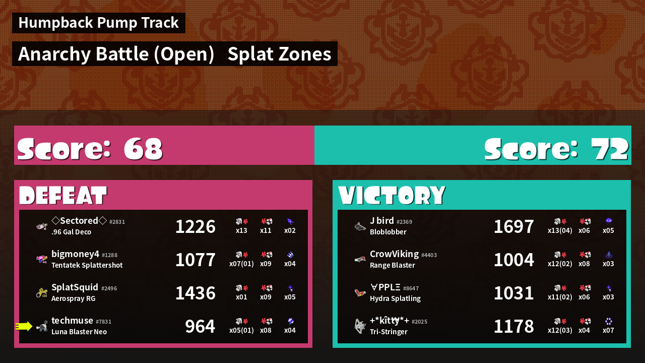 | Mode | Splat Zones - Anarchy Battle (Open) | ||