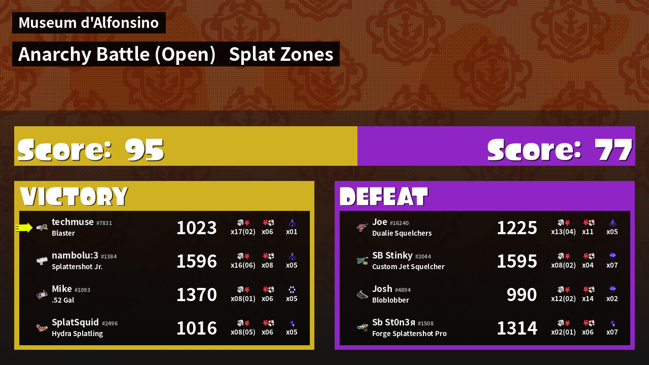 Kills / Deaths | 15 + 2 / 6 > Kill Ratio: 2.50 | ||