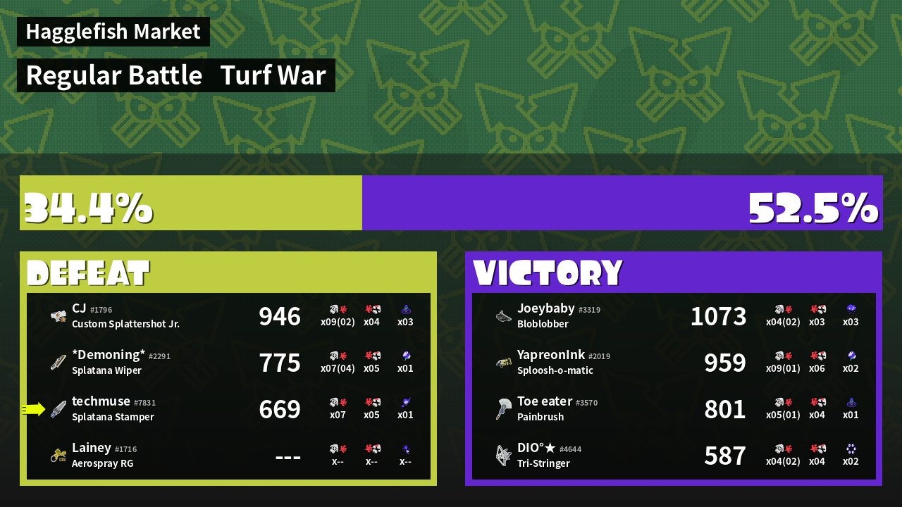 | Medals | #1 Popular Target #1 Enemy-Base Inker #1 Enemy Splatter | ||