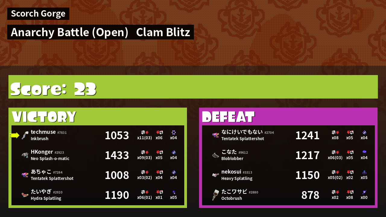 | Mode | Clam Blitz - Anarchy Battle (Open) | ||