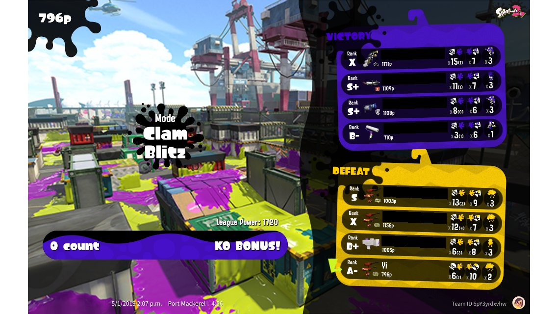 | Mode | Clam Blitz - League Battle (Quad) | |||||||||||||||||||||||||||||||