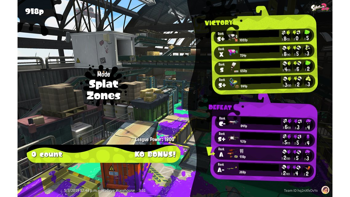 | Mode | Splat Zones - League Battle (Twin) | |||||||||||||||||||||||||||||||
