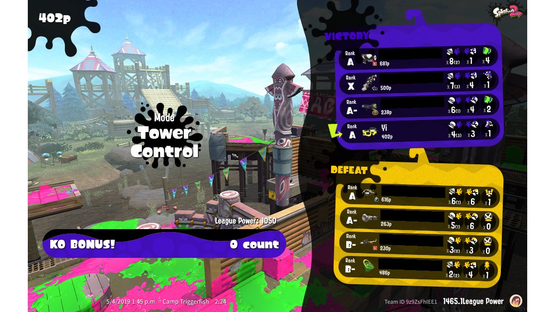 | Mode | Tower Control - League Battle (Quad) | ||||||||||||||||||||||||||||||||||