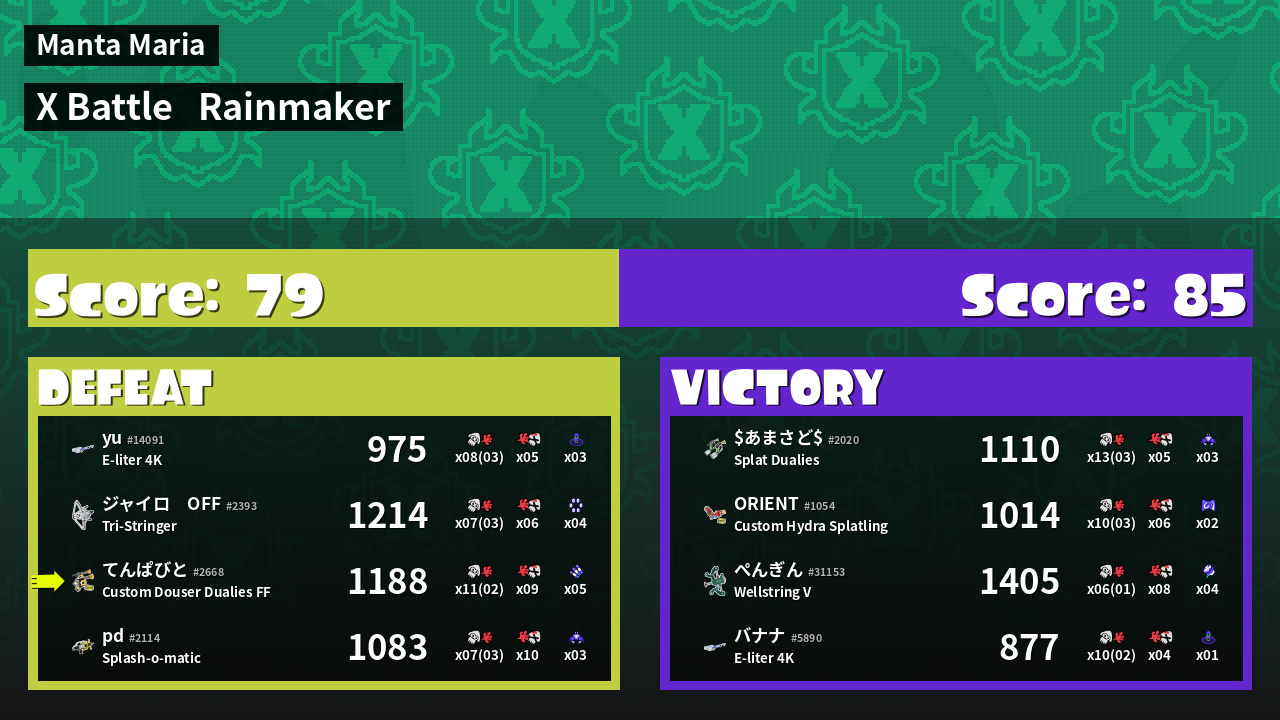 | Weapon | Custom Douser Dualies FF ( Burst Bomb / Triple Inkstrike) | ||
