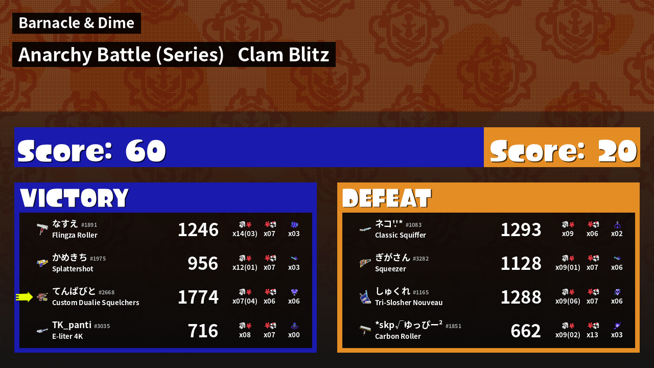 | Mode | Clam Blitz - Anarchy Battle (Series) | ||