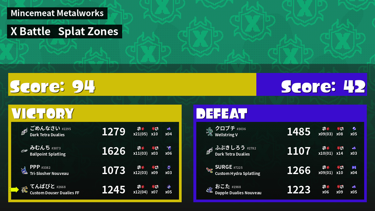 | Mode | Splat Zones - X Battle | ||