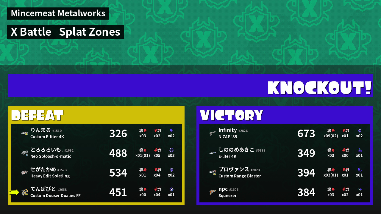 | Mode | Splat Zones - X Battle | ||