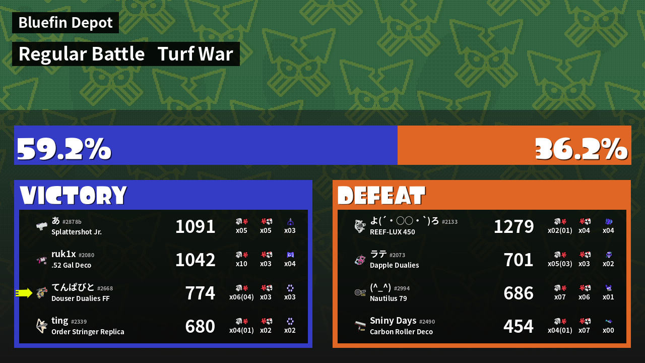 | Weapon | Douser Dualies FF ( Ink Mine / Killer Wail 5.1) | ||