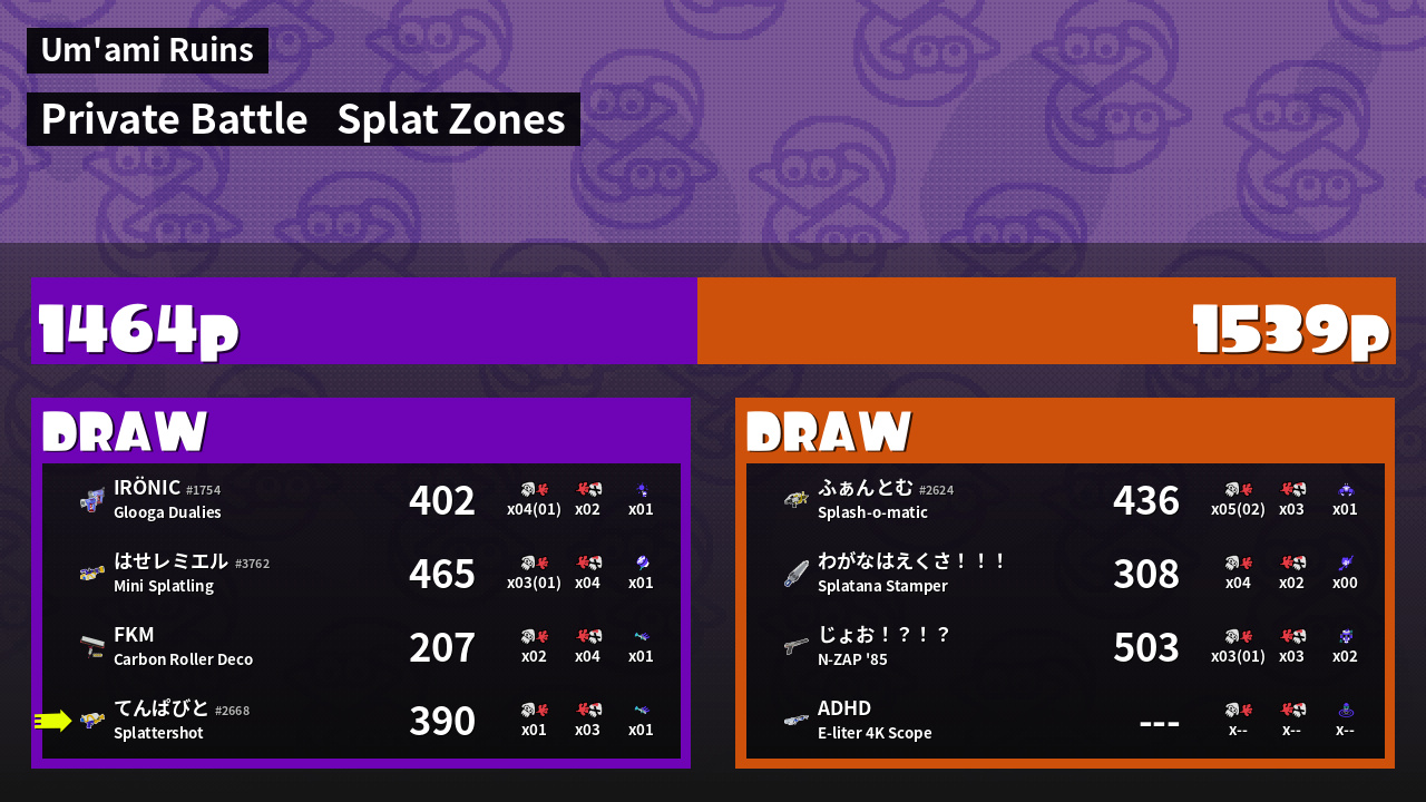 Results of てんぱびと's Battle