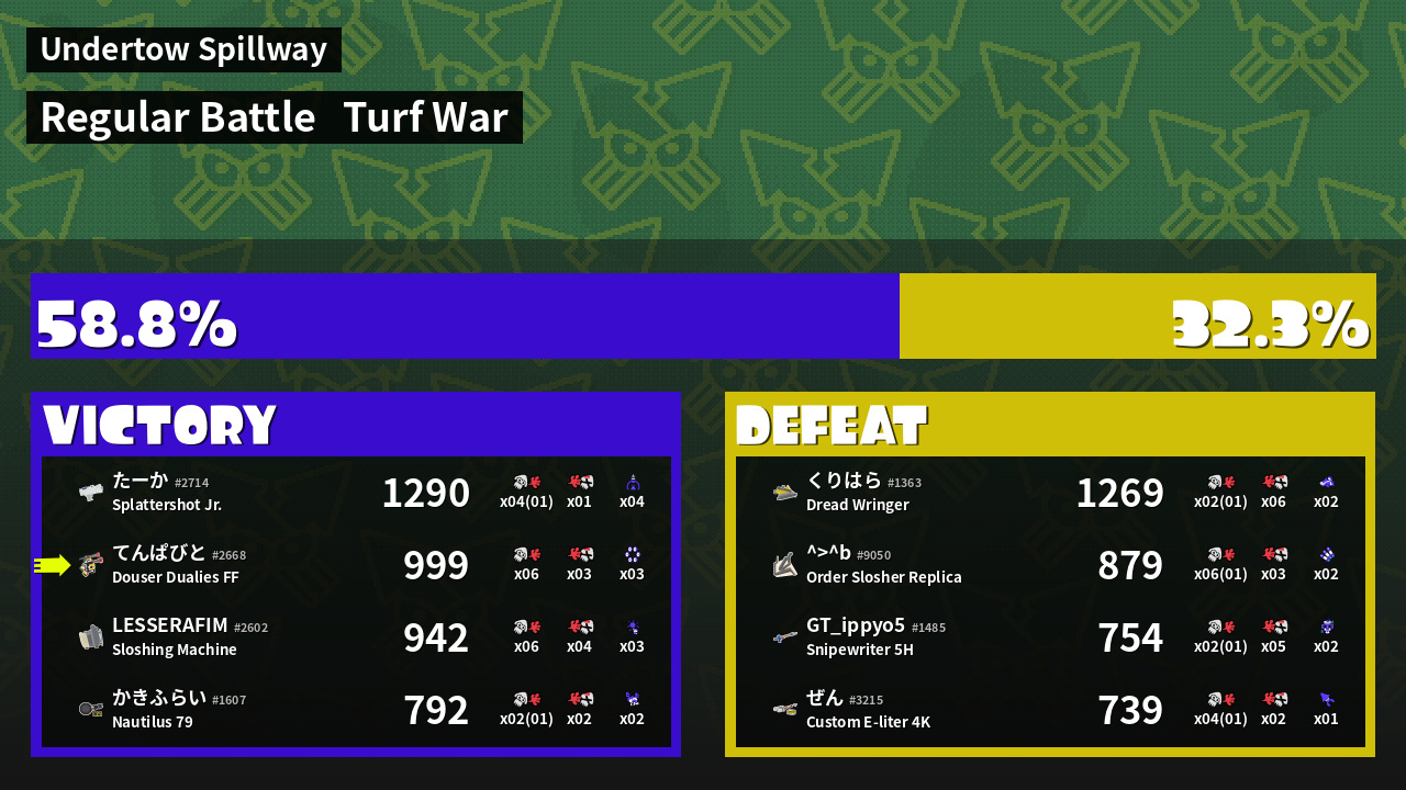 | Weapon | Douser Dualies FF ( Ink Mine / Killer Wail 5.1) | ||