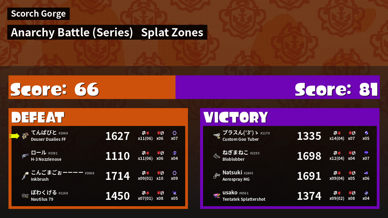| Mode | Splat Zones - Anarchy Battle (Series) | ||