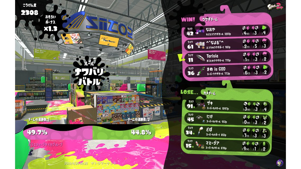 | Splatfest Title | ウサギ Fiend 168 → ウサギ Defender 22 | |||||||||||||||||||||||||||||||