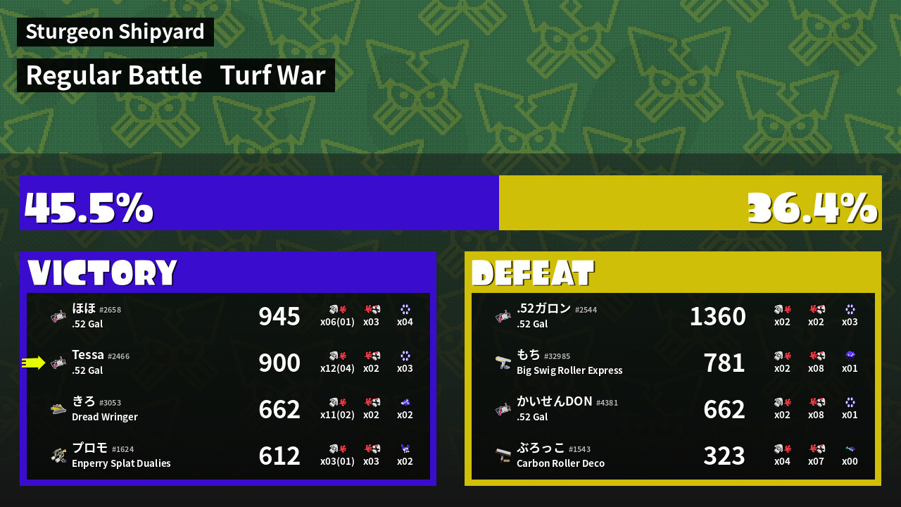 | Mode | Turf War - Regular Battle | ||
