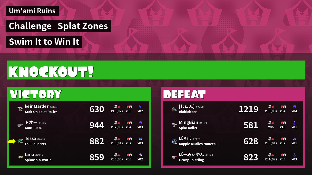 | Medals | #1 Super Jump Spot #1 Splat Zone Hero #1 Ink Consumer | ||
