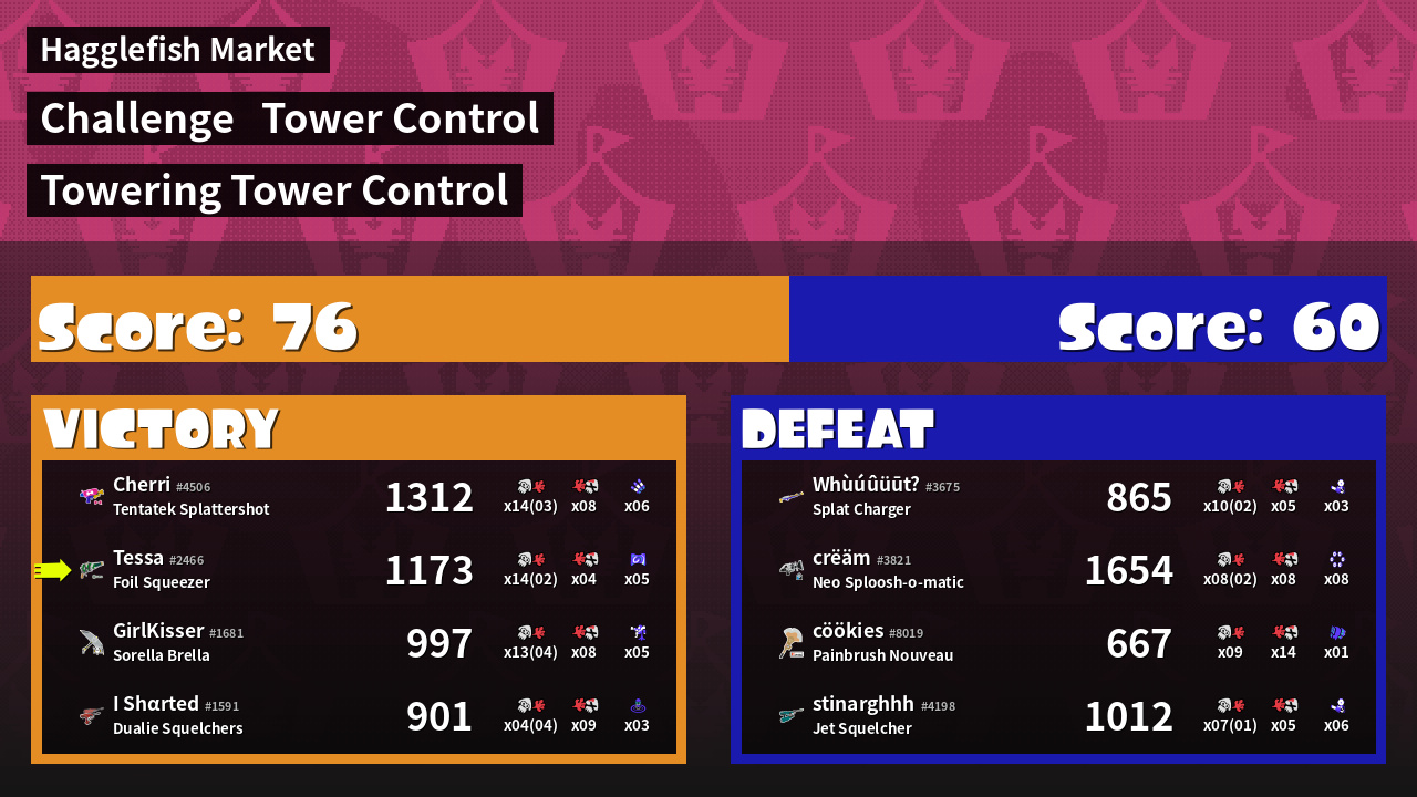 | Medals | #1 Overall Splatter #1 Enemy Splatter #1 Tower Stopper | ||