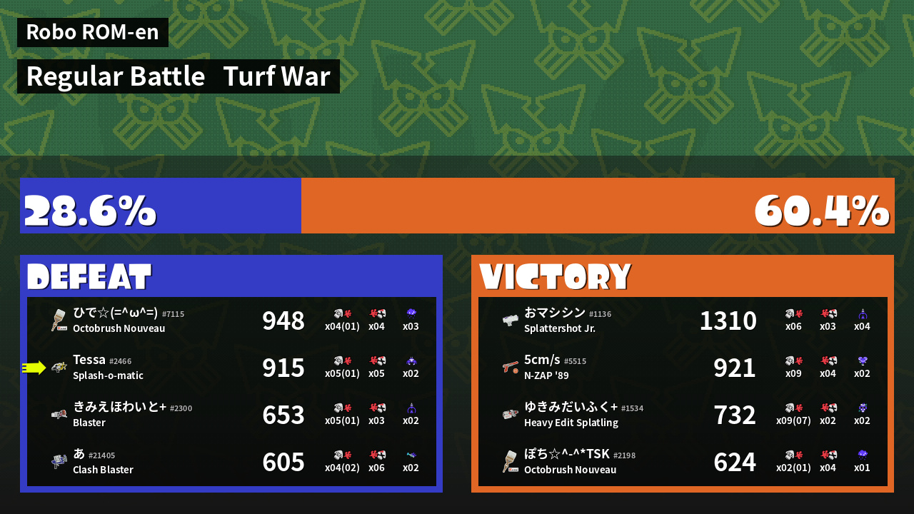 | Mode | Turf War - Regular Battle | ||